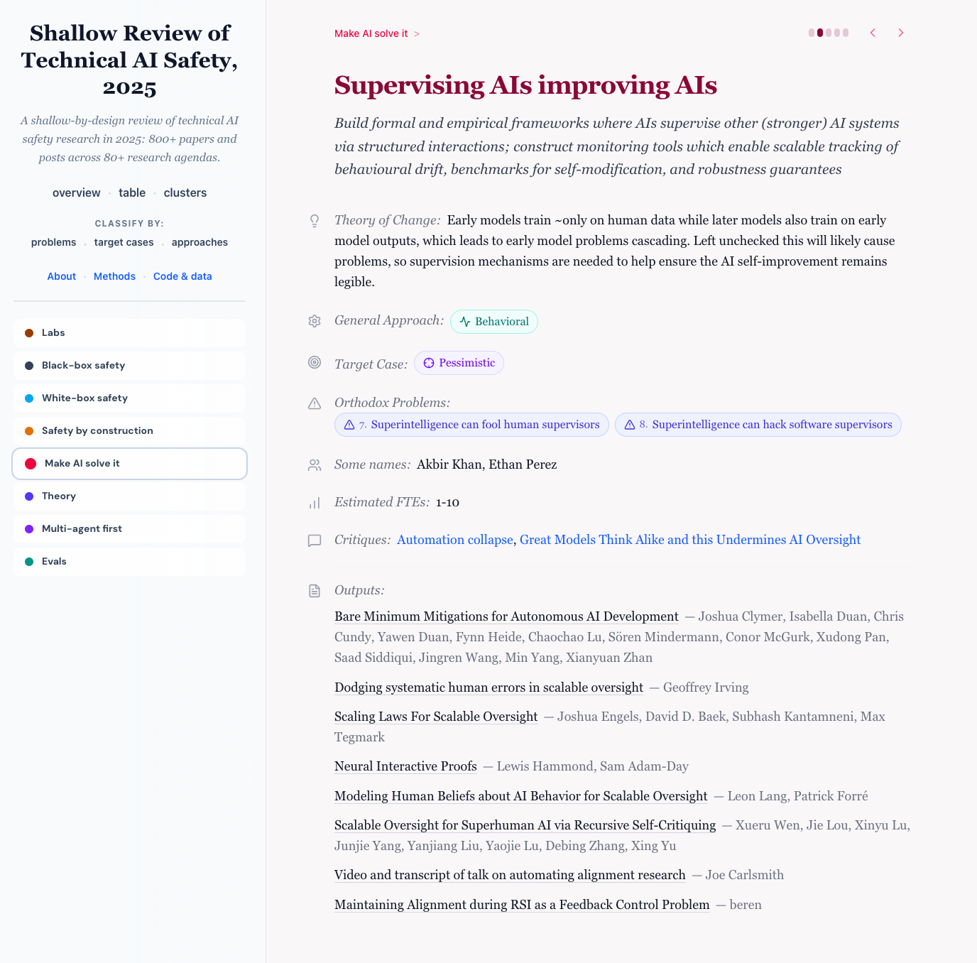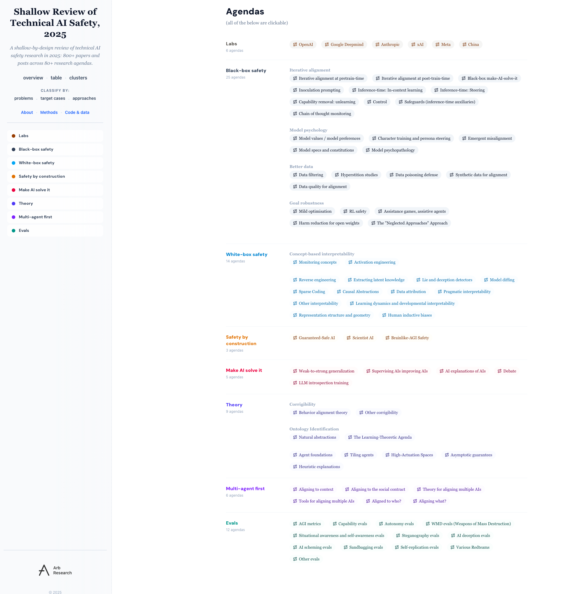 We recently collaborated with the Arb Research team on their latest technical AI safety review. This document provides a strong overview of the space, and we built a website to make it significantly more manageable.