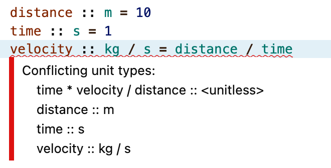 Unit type annotations allow users to annotate variables with unit types, such as kilograms or dollars, or combinations of those, such as m/s^2.