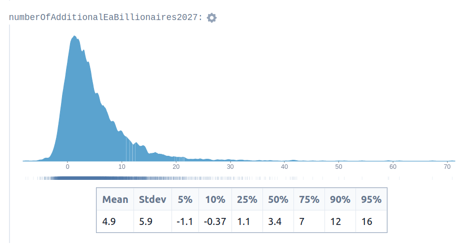 Erich creates a Squiggle model to estimate the number of future EA billionaires. His estimate looks like this: